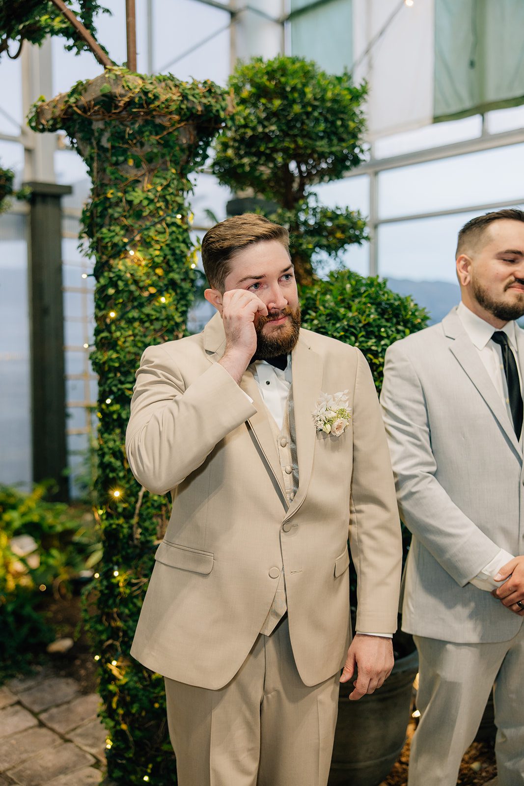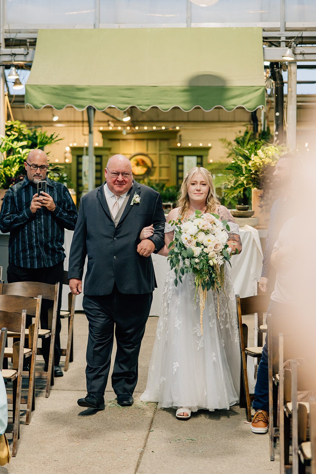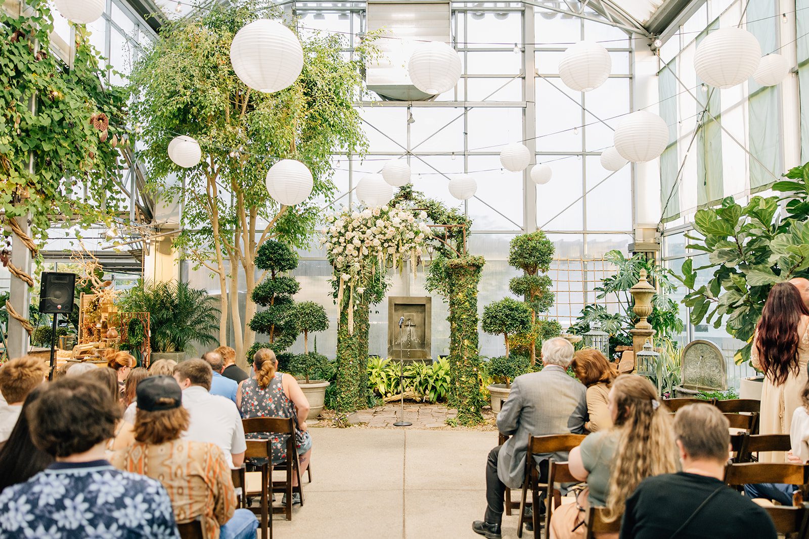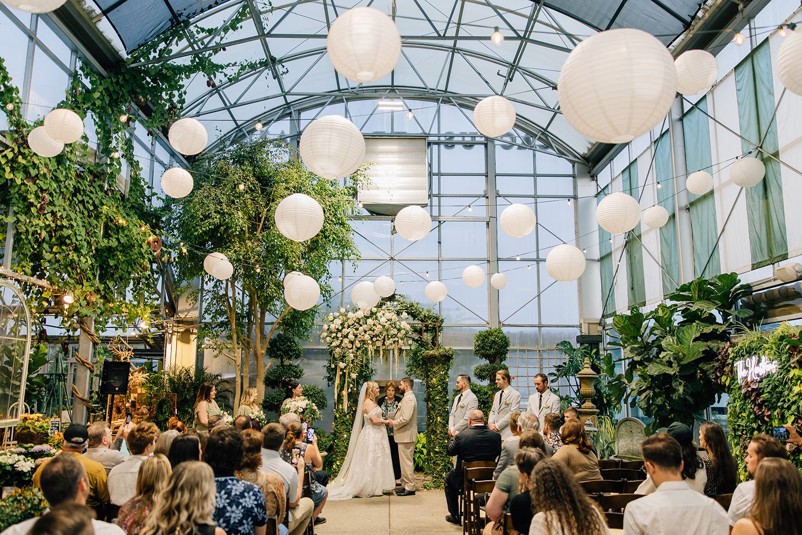 Cactus & Tropicals provided the dreamiest setting for Nicole and Morgan’s ceremony. The venue’s greenhouse vibe, with its towering plants and cascading greenery, created an intimate and romantic atmosphere. Guests were seated among the foliage, adding a unique touch that you just can’t find at a traditional venue.
