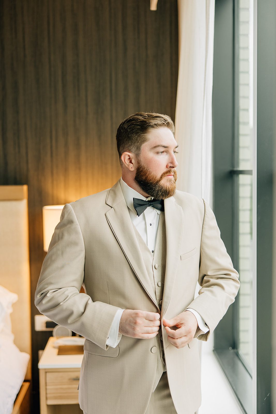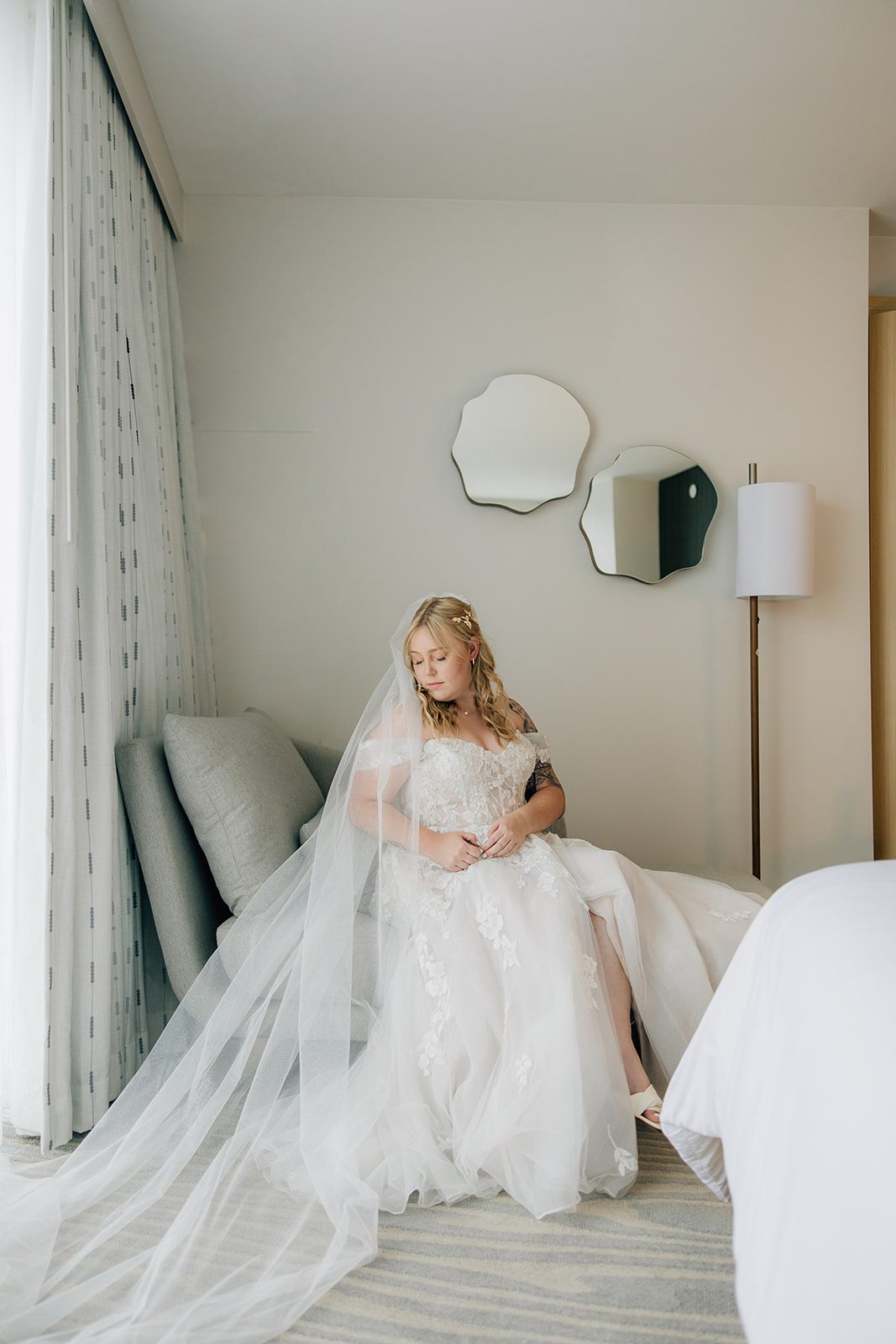 Nicole and Morgan started their day at a nearby hotel, where the energy was equal parts excitement and calm. It’s always so special to capture these intimate moments—from buttoning up the dress to the heartfelt notes exchanged between the couple. The hotel offered the perfect backdrop for these moments, with soft natural light and plenty of space for the bridal party to relax and get ready.