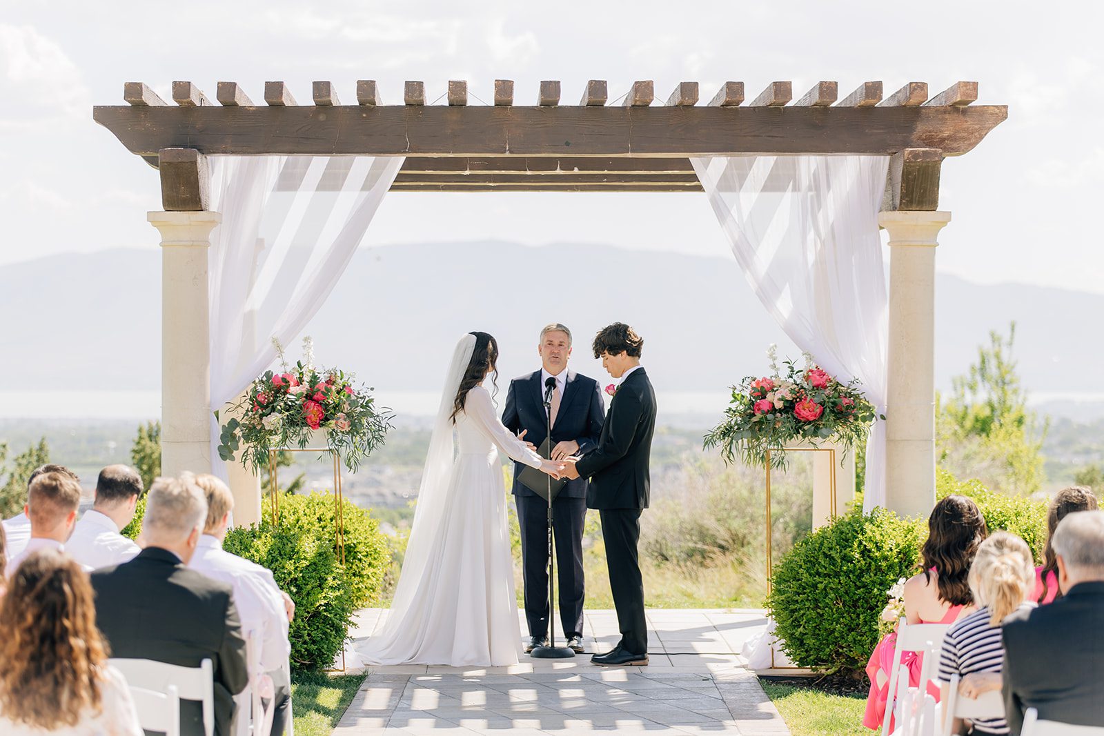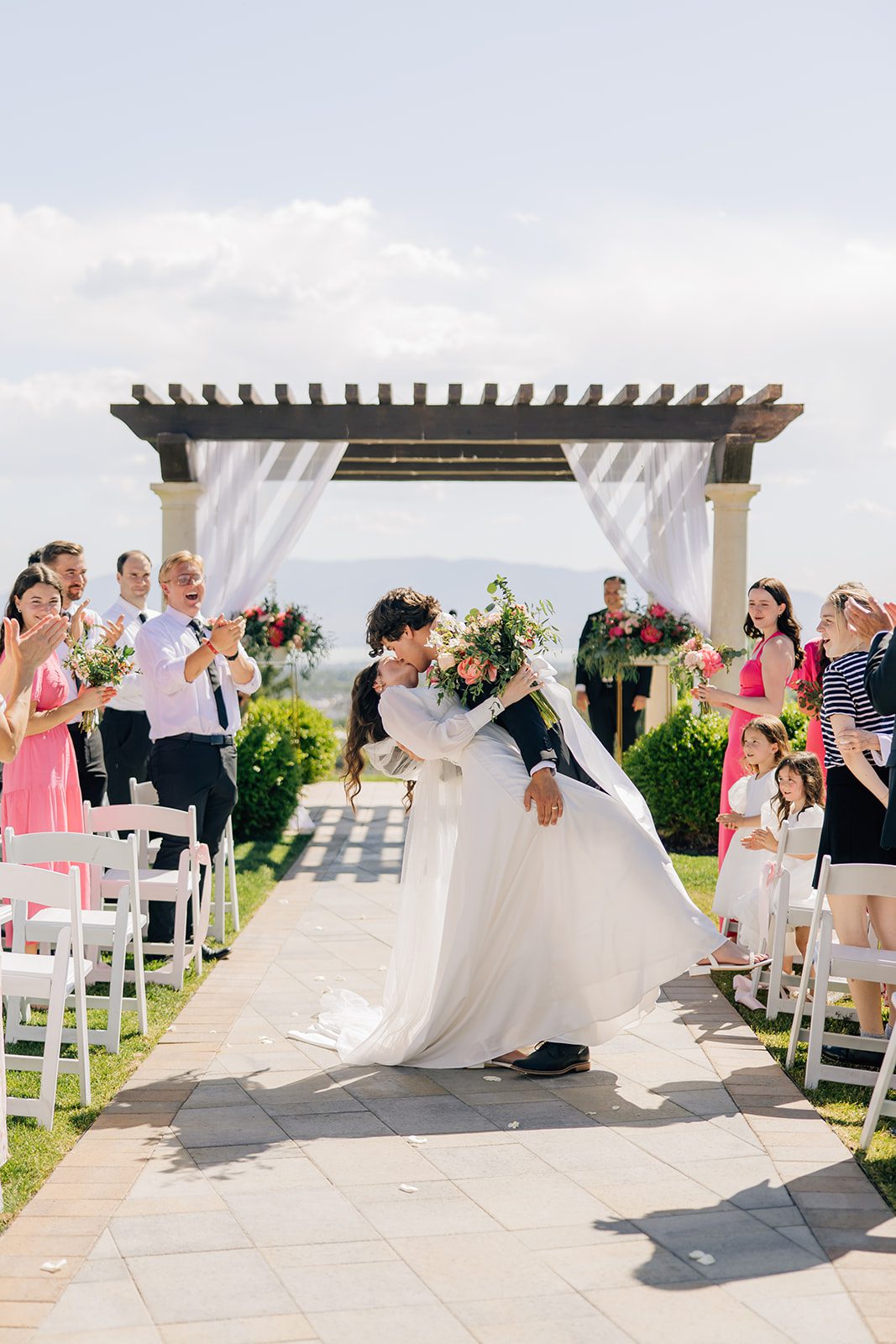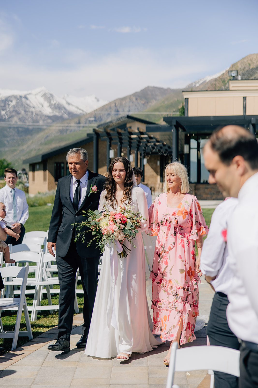 From the moment Hailey walked down the aisle, the Cedar Hills Golf Course provided a breathtaking backdrop of rolling greens and mountain views. The open-air ceremony was absolutely stunning, with the golden sunset casting a warm glow over the couple and their guests.