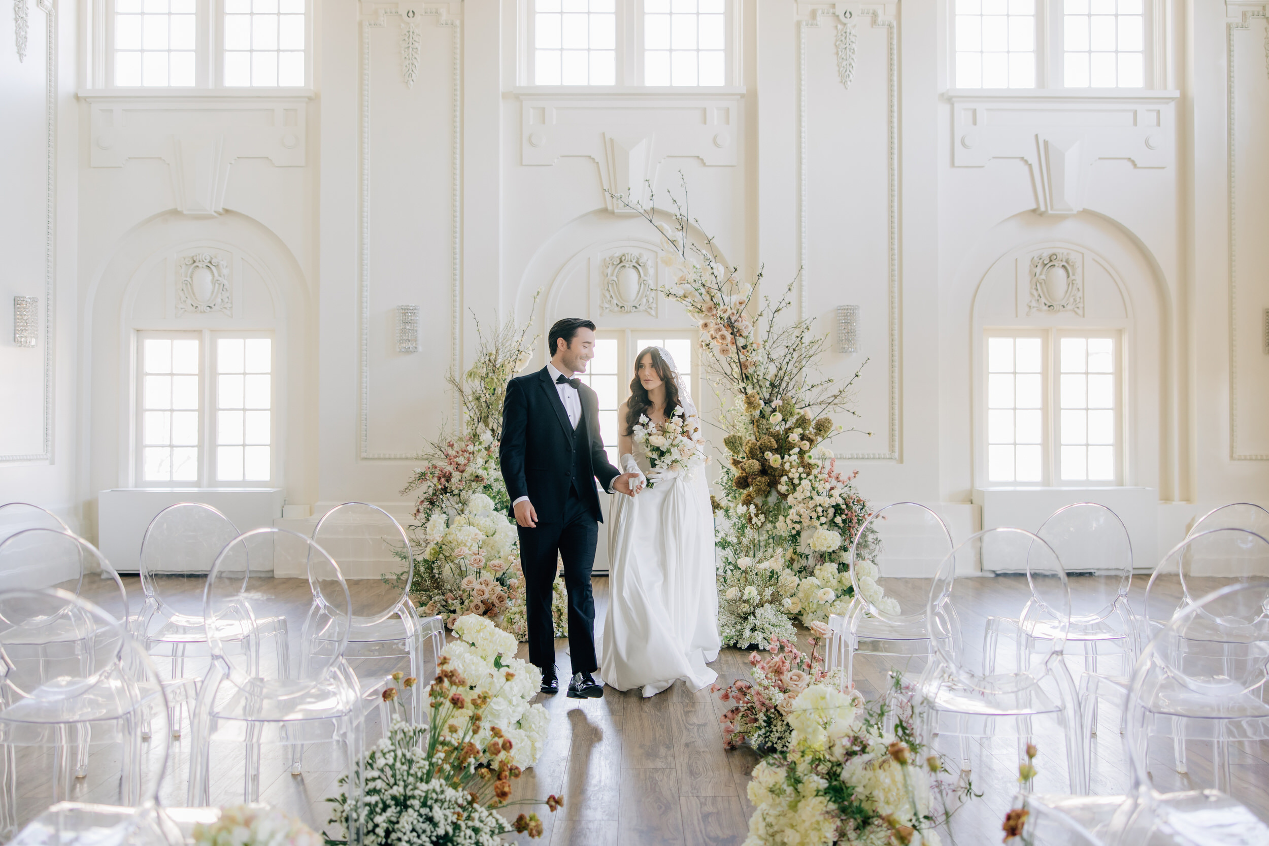 @merci.floral crafted the most stunning floral arrangements for the day. Lush greenery combined with delicate white blooms created a classic yet contemporary look that perfectly complemented the venue’s vintage beauty.