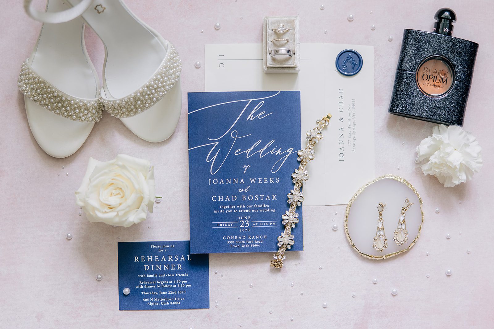 The cake? A true work of art, crafted by @debstimelesscakes—it looked as good as it tasted! The florals were extra special because they were done by Joanna’s sister, Diana, She doesn’t usually do flowers but absolutely nailed it. Talk about a labor of love! The stunning wedding invitations came from @beautifulweddingannoucements, tying everything together with elegance and charm. (And yes, we made sure to capture those dreamy flat lays with the invites, rings, and perfume bottle!)