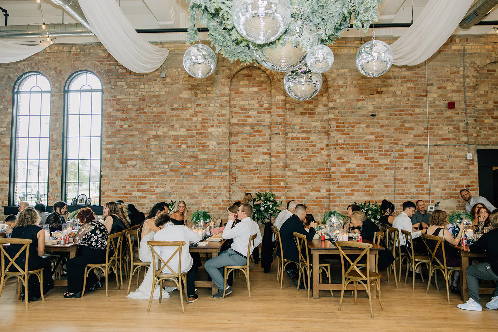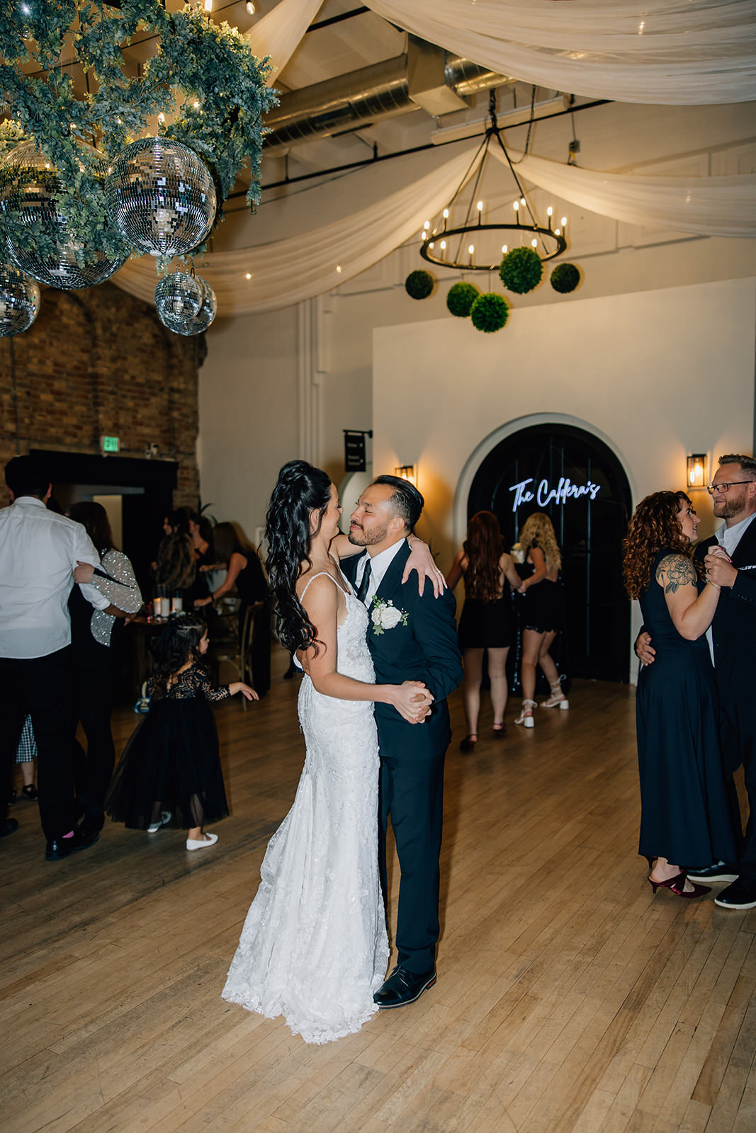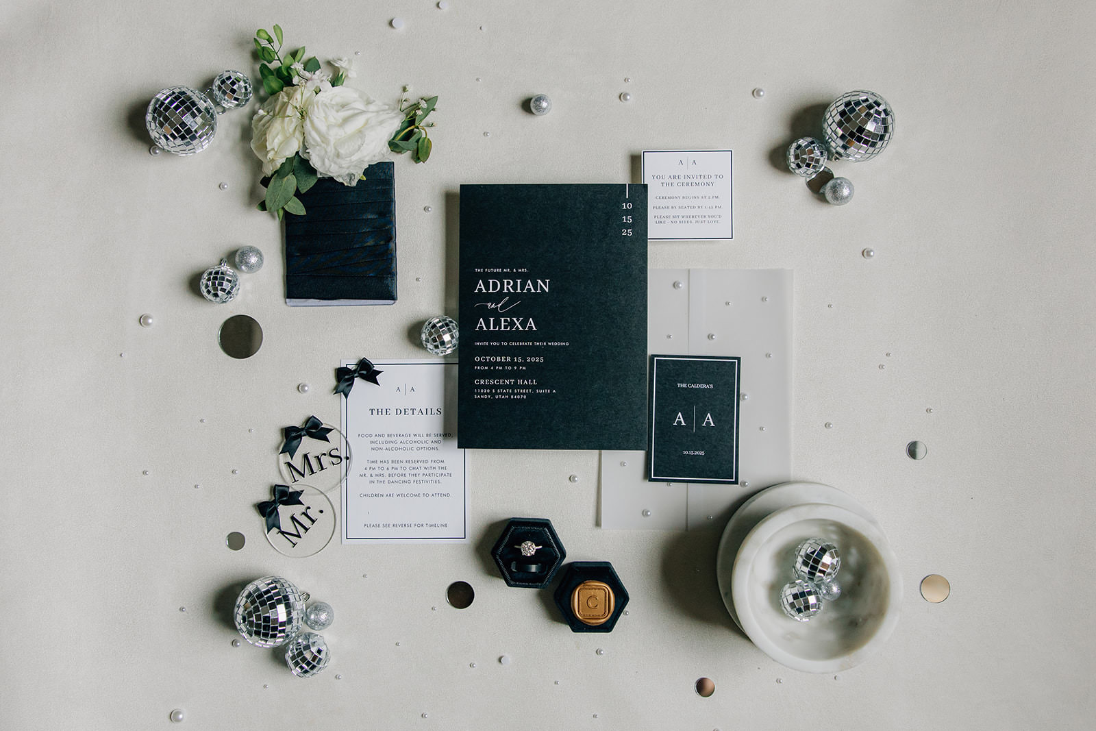 Crescent Hall has quickly become one of my favorite Utah wedding venues. It’s bright, modern, and versatile — whether you’re planning an elegant black-tie wedding or a fun disco-themed party like this one, it fits every vision.