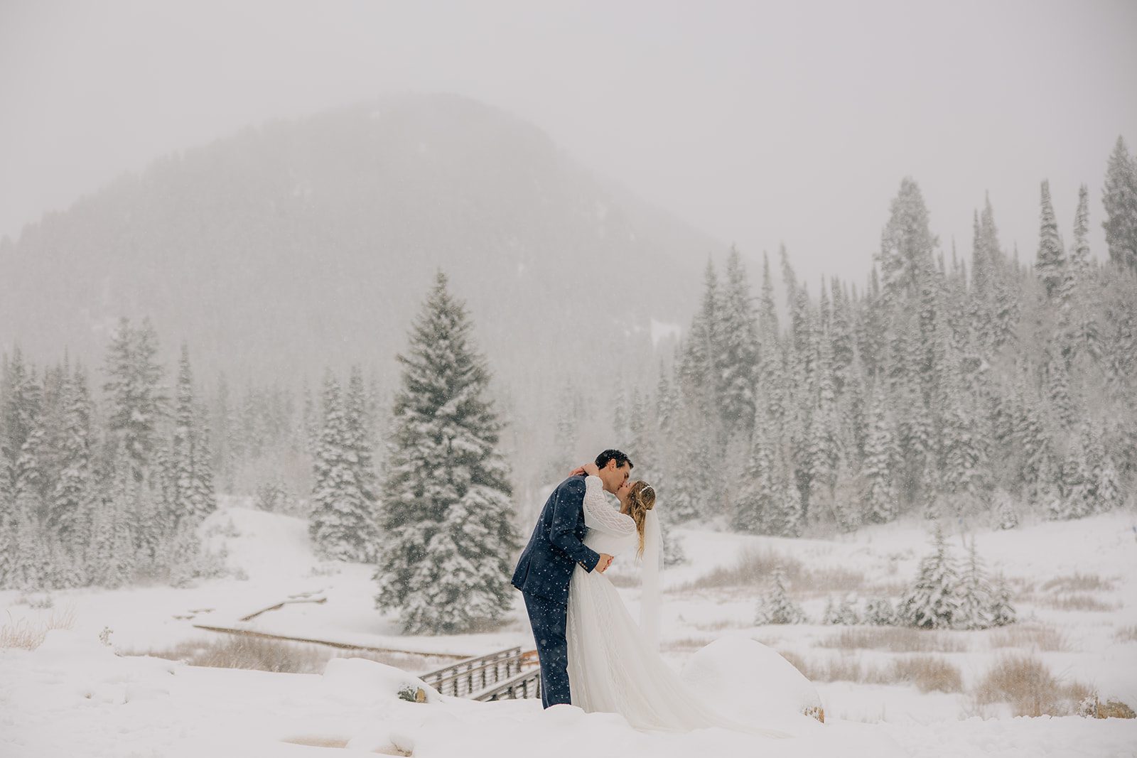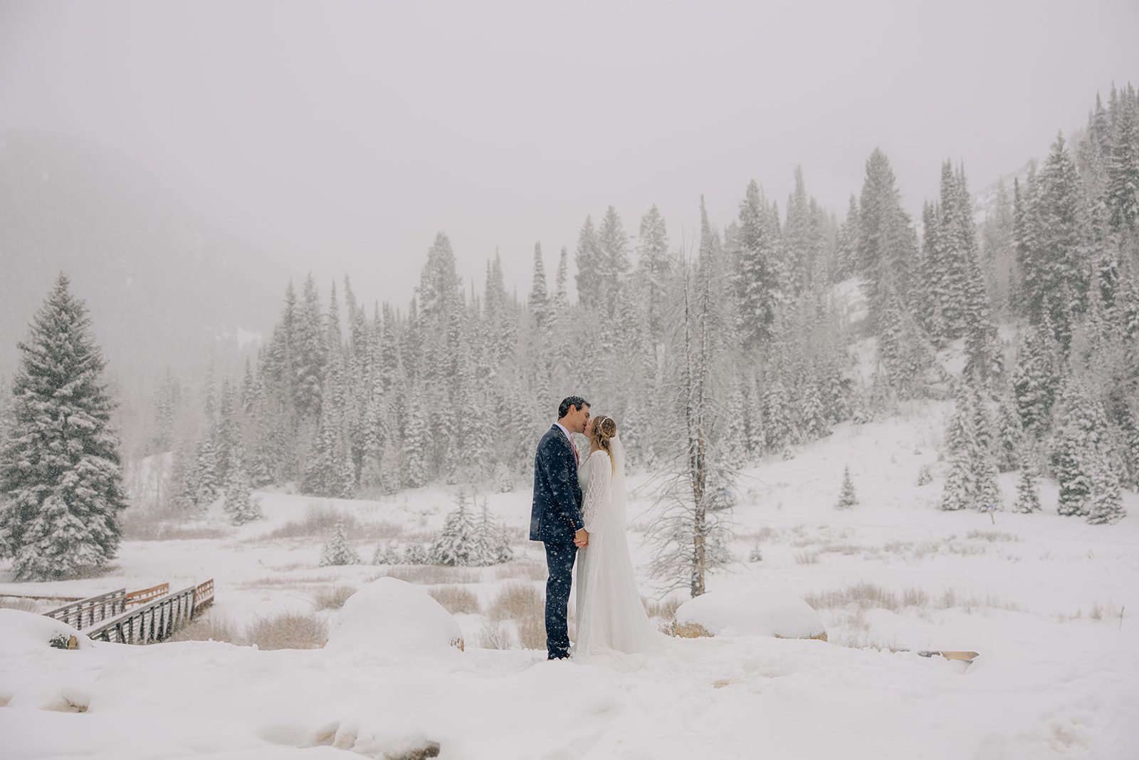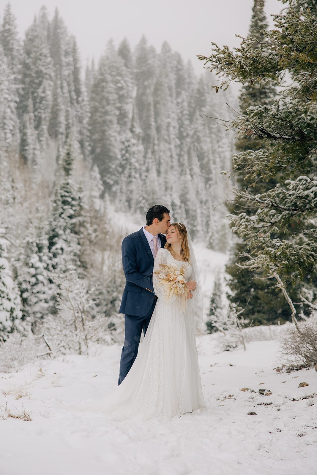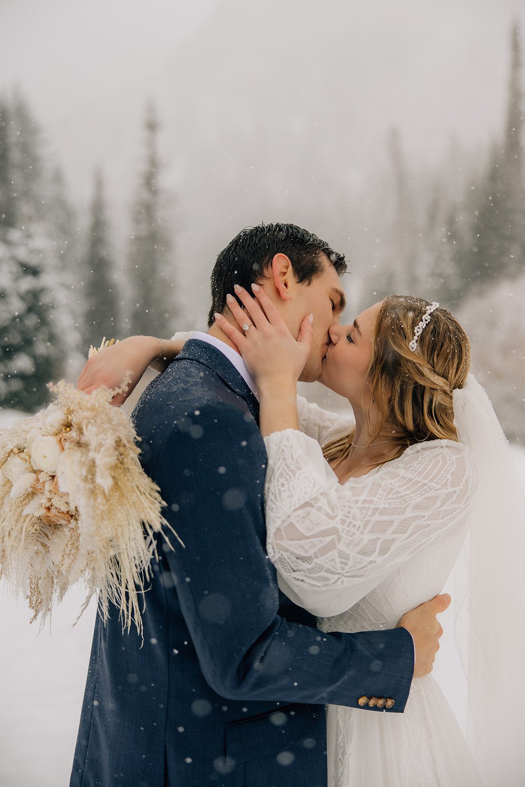 When it came time to capture their formal session, the setting could not have been more magical. We ventured up to Jordan Pines Campground during a winter storm, and the falling snow created an enchanting atmosphere. The way the soft flakes danced around them, the crisp winter air. Their undeniable love made for some of the most breathtaking images. Every moment of that session reflected the warmth and joy they share.