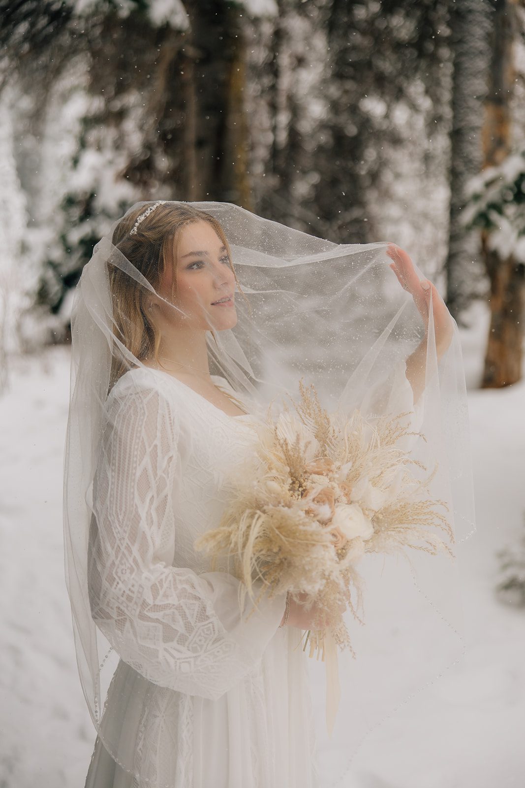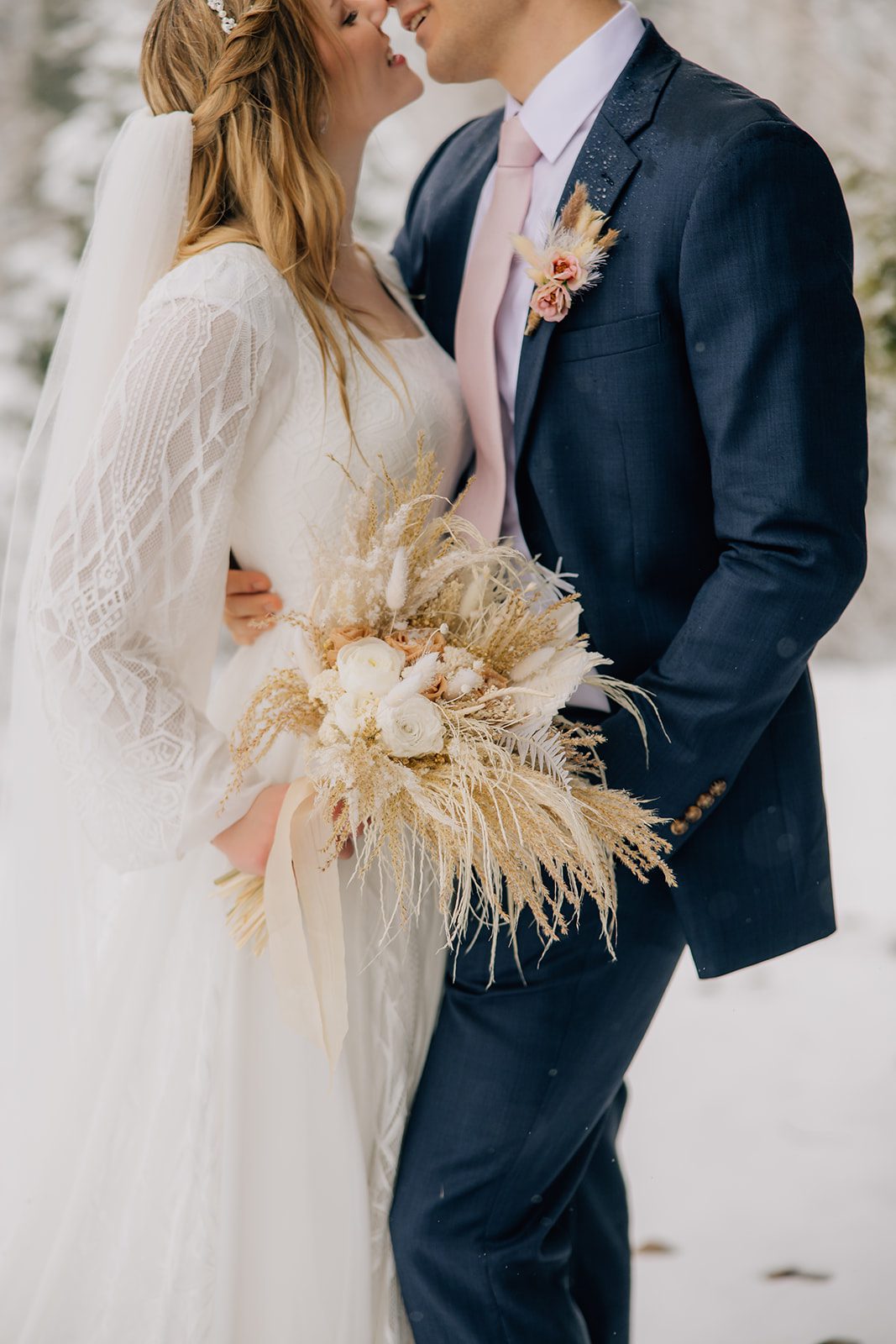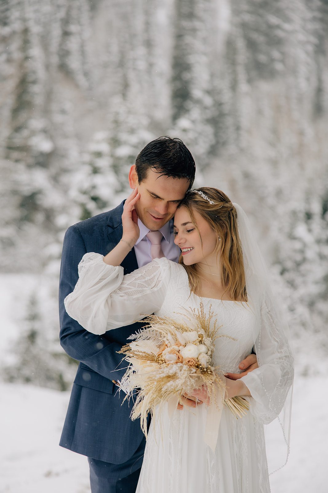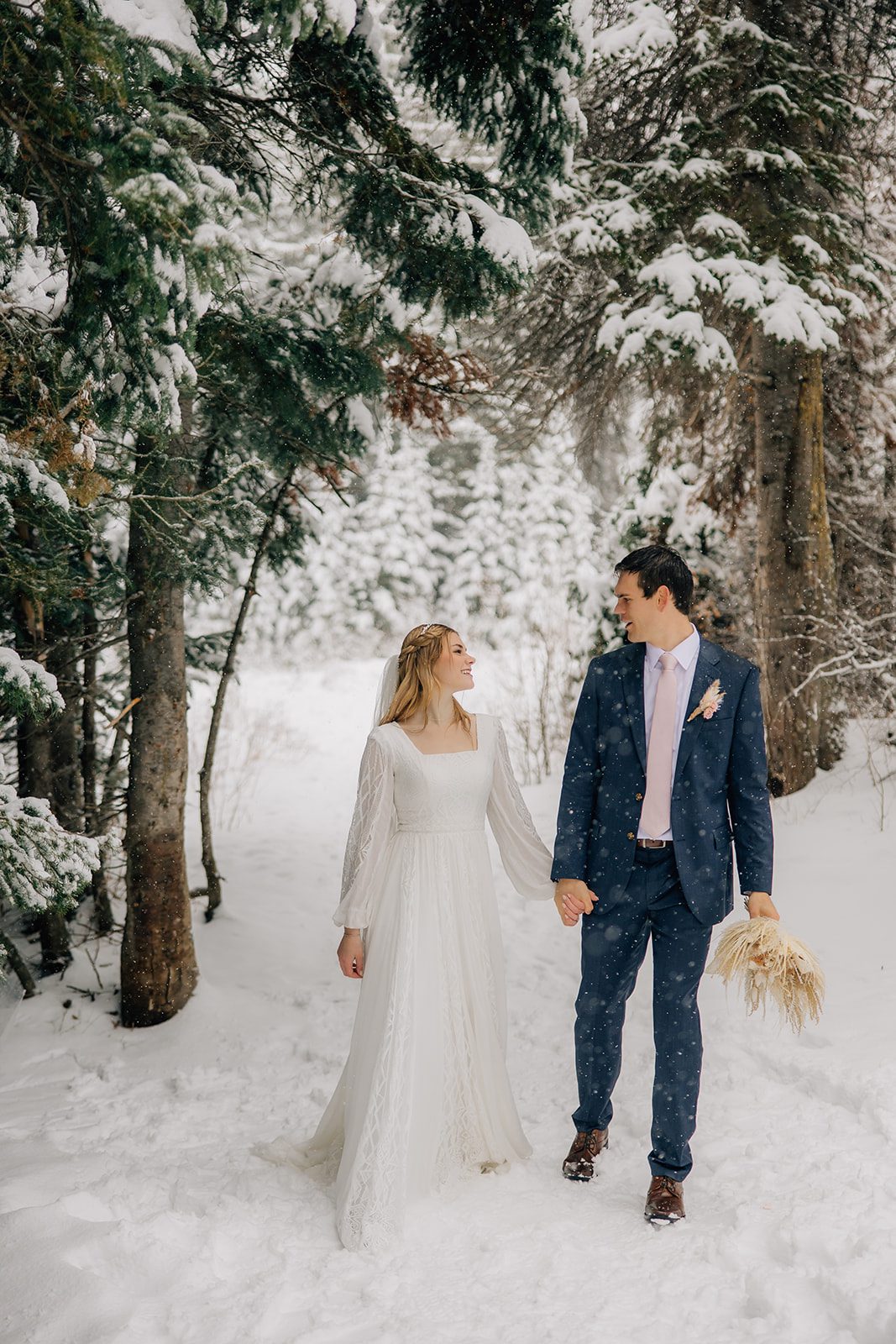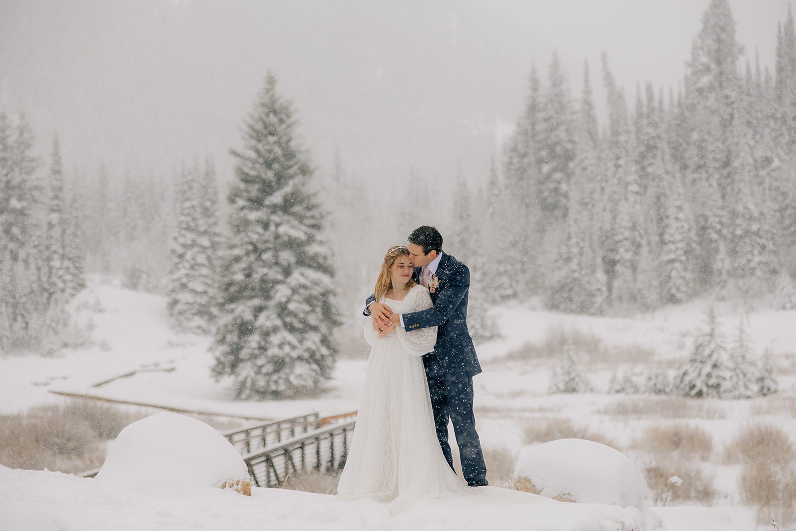 When it came time to capture their formal session, the setting could not have been more magical. We ventured up to Jordan Pines Campground during a winter storm, and the falling snow created an enchanting atmosphere. The way the soft flakes danced around them, the crisp winter air. Their undeniable love made for some of the most breathtaking images. Every moment of that session reflected the warmth and joy they share.