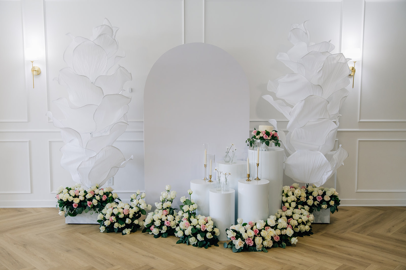 For this shoot, we wanted something soft, romantic, and editorial. The venue allowed every detail—from the ceremony backdrop to the reception table design—to truly stand out.