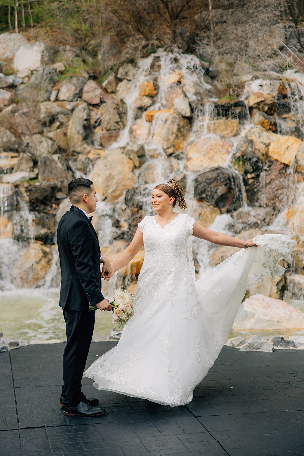 Sasha and Chris’s wedding at Millennial Falls in Draper was straight out of a dream. This venue has it all—lush gardens, a stunning waterfall, and gorgeous indoor spaces. It was the perfect spot for their big day!