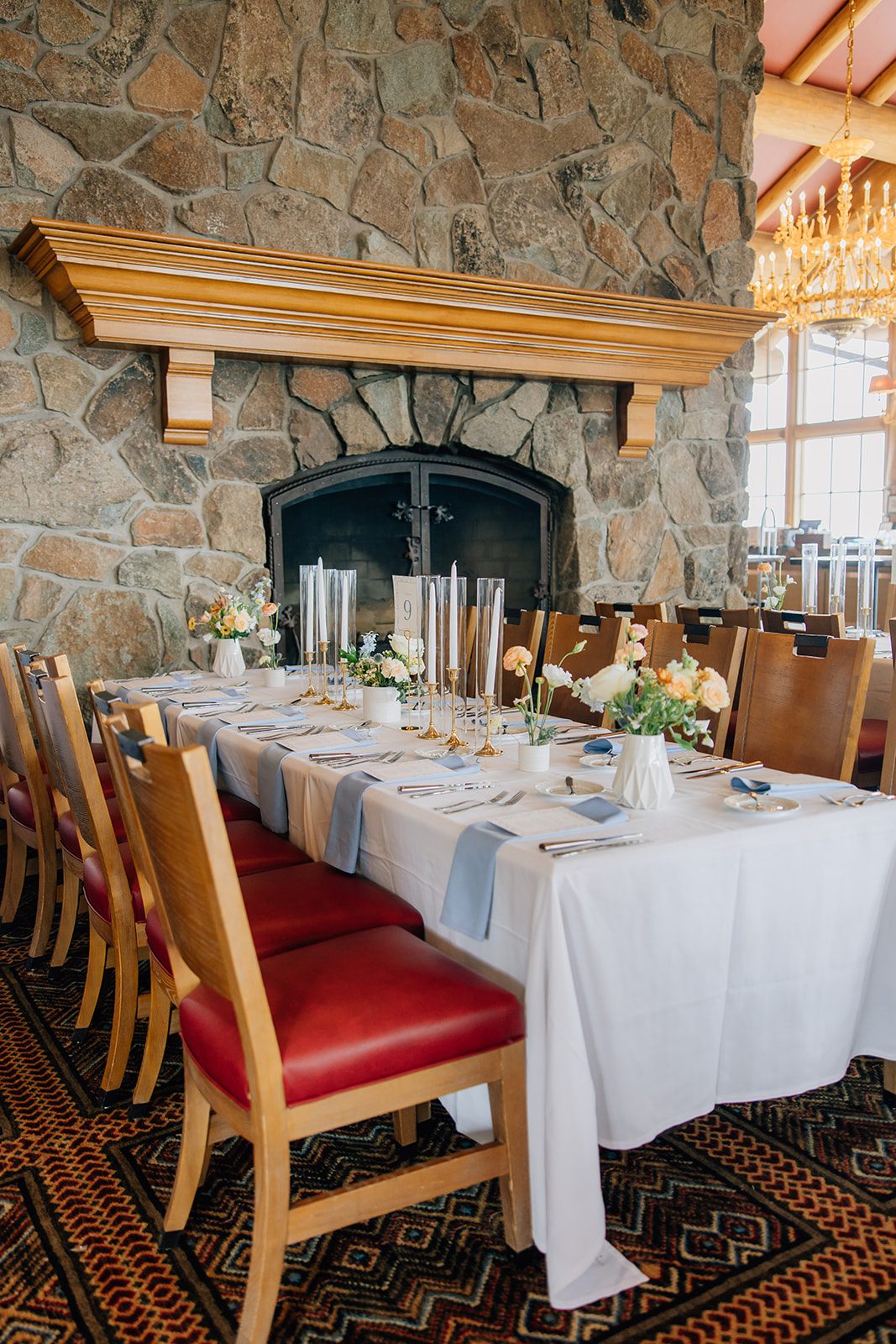 Needles Lodge has that ideal mix of rustic mountain charm and sophisticated elegance. The lodge itself has a cozy, warm vibe with wood beams, stone accents, and large windows that bring the outdoors in. It’s a blank canvas that looks amazing with any decor style, whether you’re going for boho chic, classic elegance, or a mountain-inspired theme. The space is versatile and adaptable, making it easy to create a look that reflects your unique style and vision.