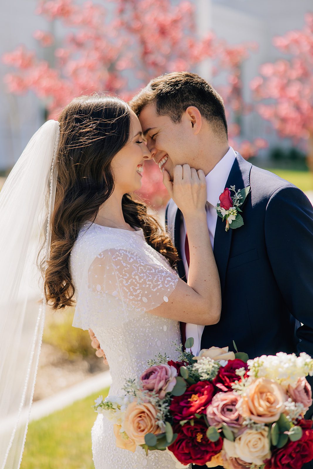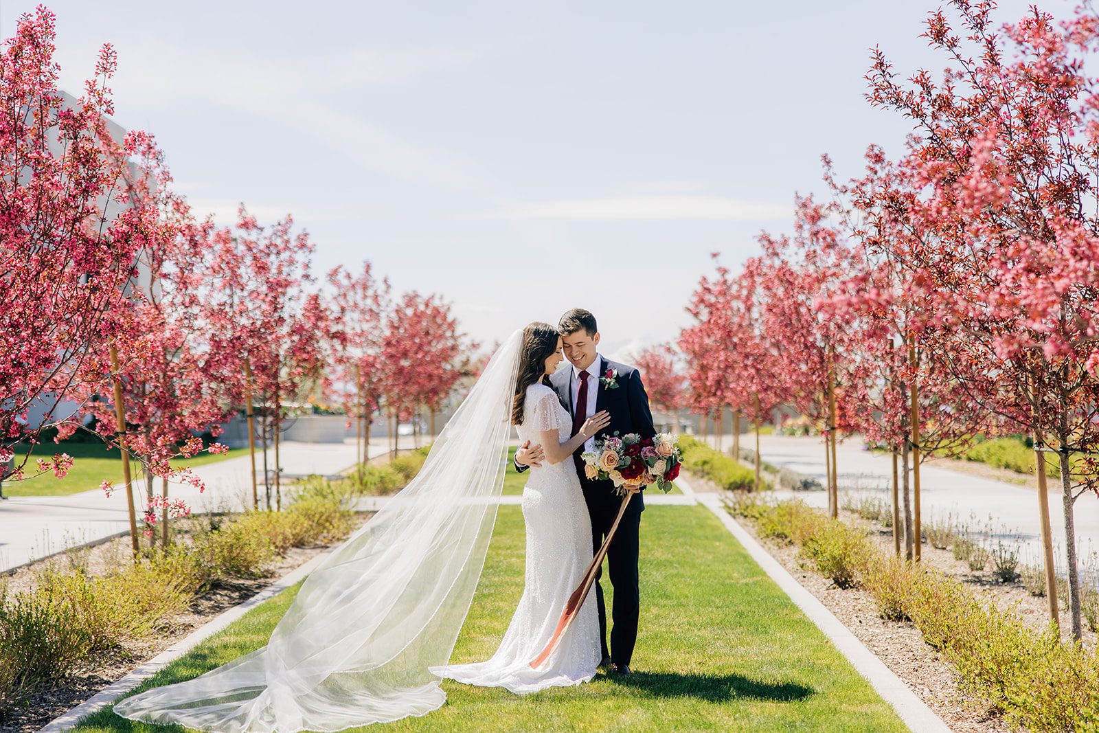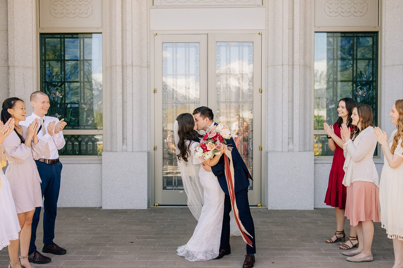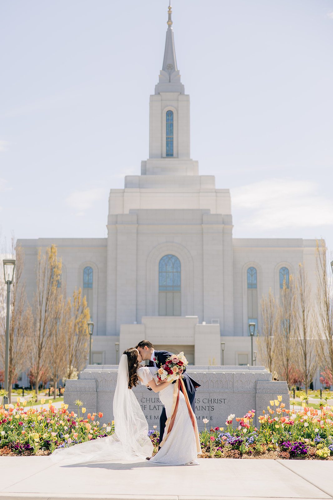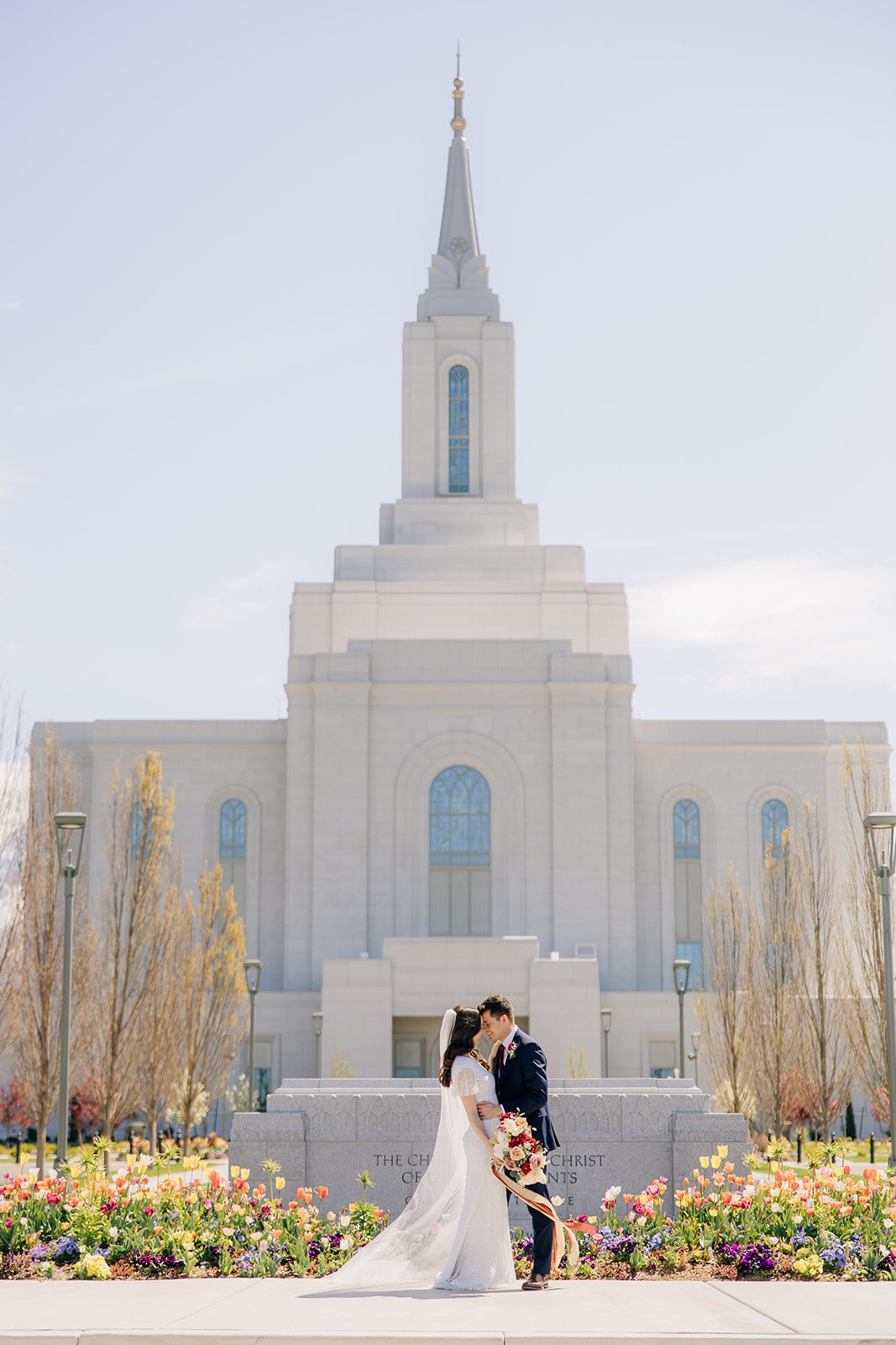 Lauren and Andrew began their journey as husband and wife with a sacred sealing at the Orem Utah Temple. Surrounded by close family and friends, they made eternal promises to each other in a setting as stunning as their love story. The temple’s crisp white exterior and beautifully manicured grounds made for the perfect backdrop for their first photos as newlyweds.