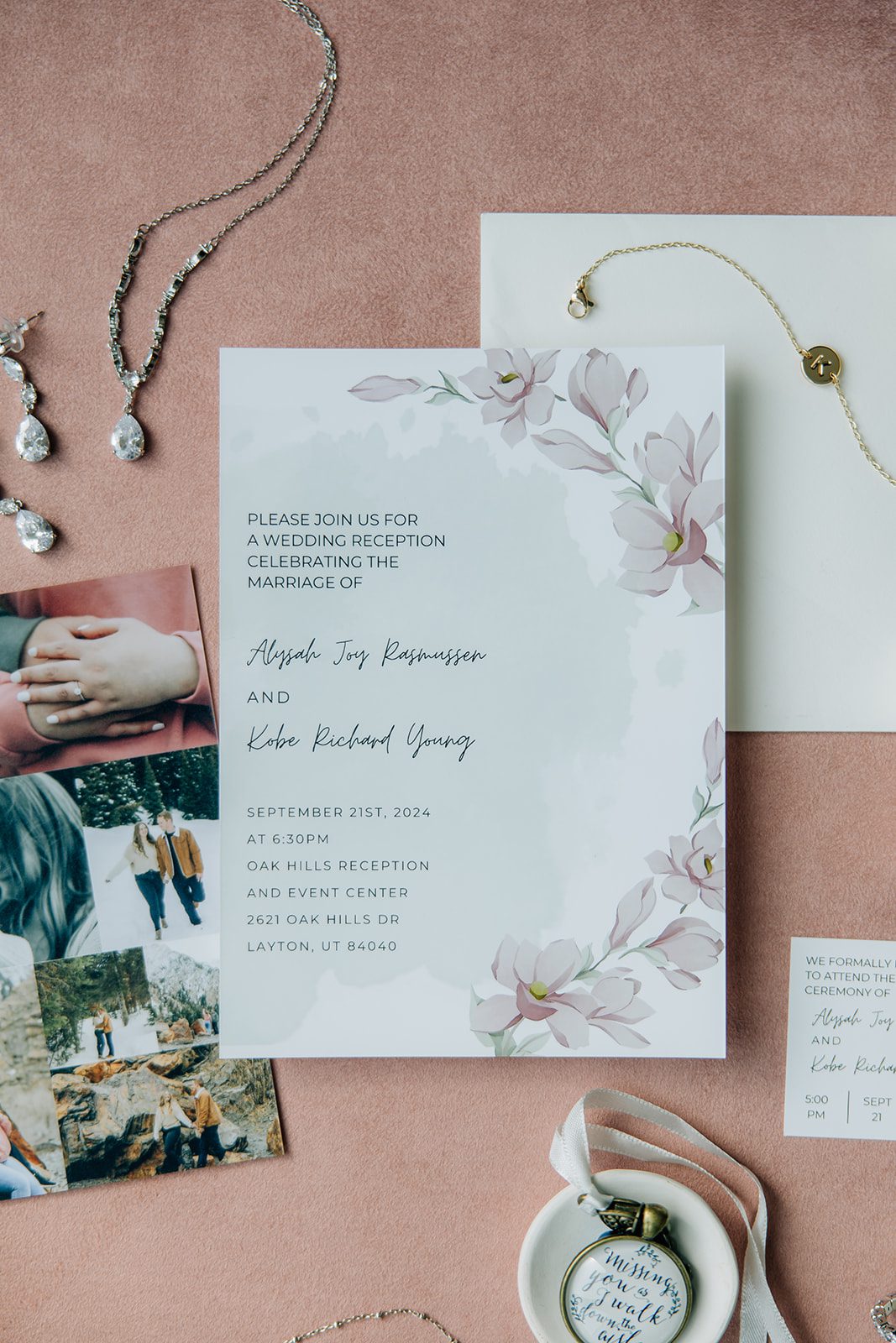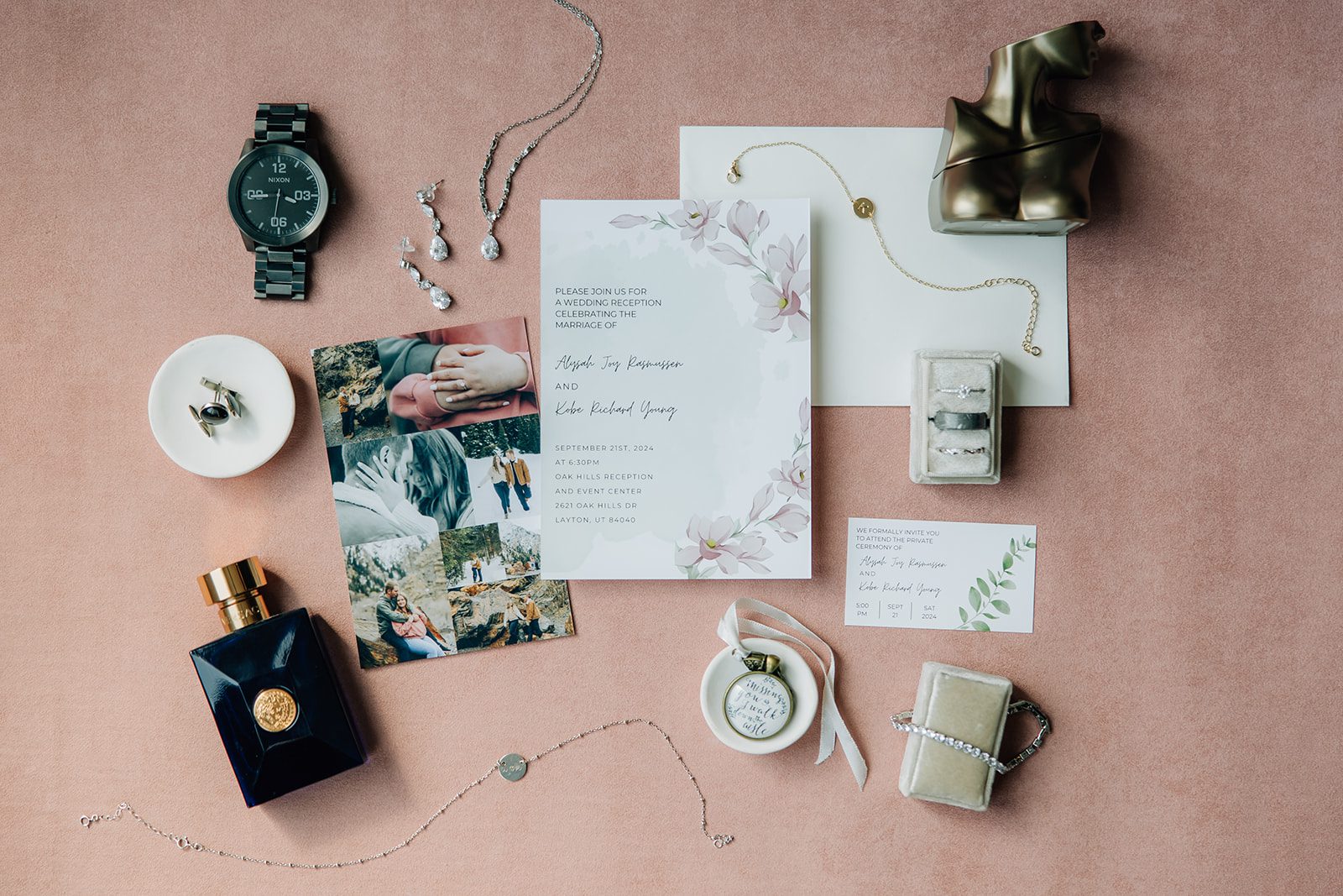 - Invitations: Designed by the couple using Canva & Sam’s Club Photo (P.S. If you’re a future couple, don’t forget to bring two invitation suites for detail shots!)