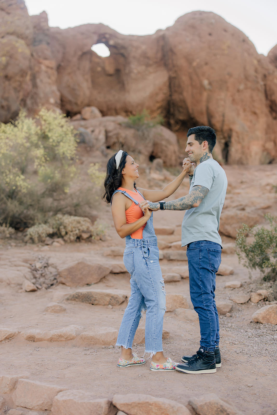 If you’re dreaming of desert engagement photos with glowing light and stunning views, Papago Park (especially Hole-in-the-Rock) is seriously one of the best places you can choose.