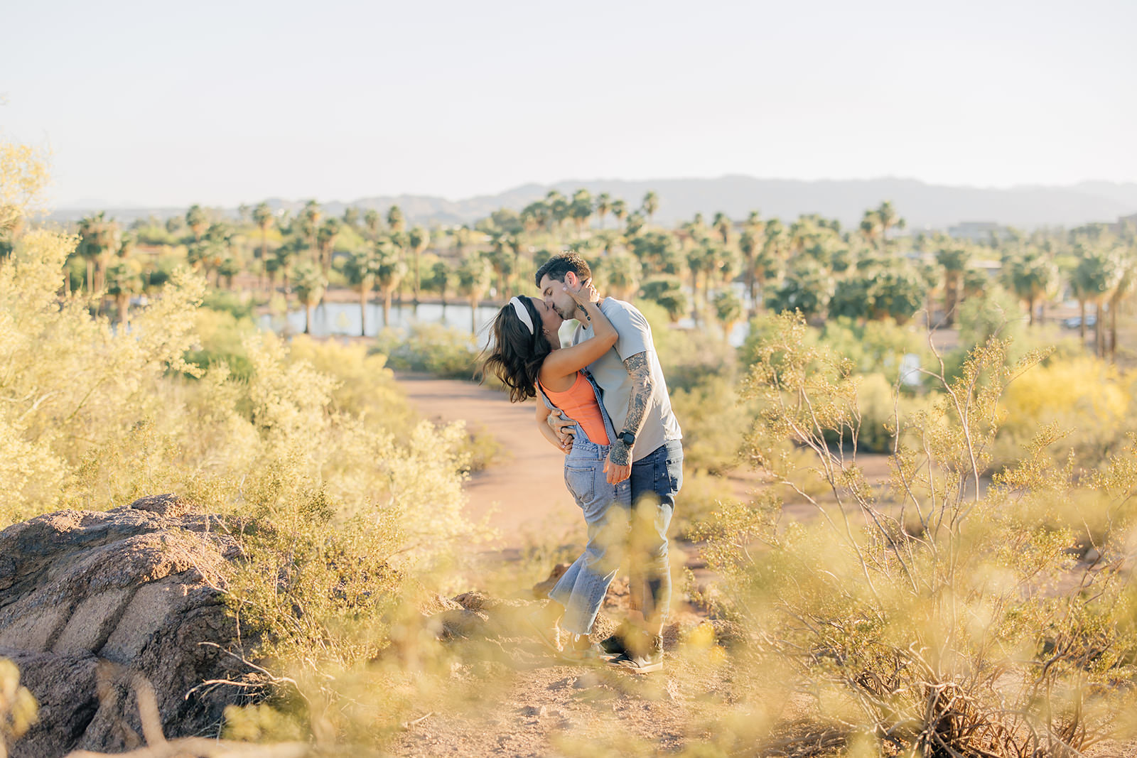 Let’s talk about the lighting for a second… because this is where Papago Park engagement photos really shine.