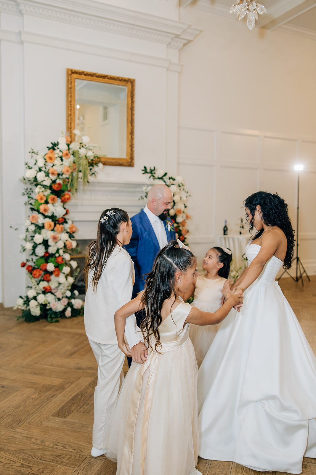 The love story that brought them here started in a modern way—on a dating app. As Kelly put it, Kody was “breathtaking and so sexy” that she had to make the first move. And when it came time to propose, Kody pulled off the most thoughtful moment ever. With Kelly’s mom visiting from Perú, he planned a dinner at her favorite restaurant, where each of his daughters held up a sign saying “Will,” “You,” “Marry,” “Us.” When he got down on one knee, he even had a spotlight on the ring—talk about making it pop!
