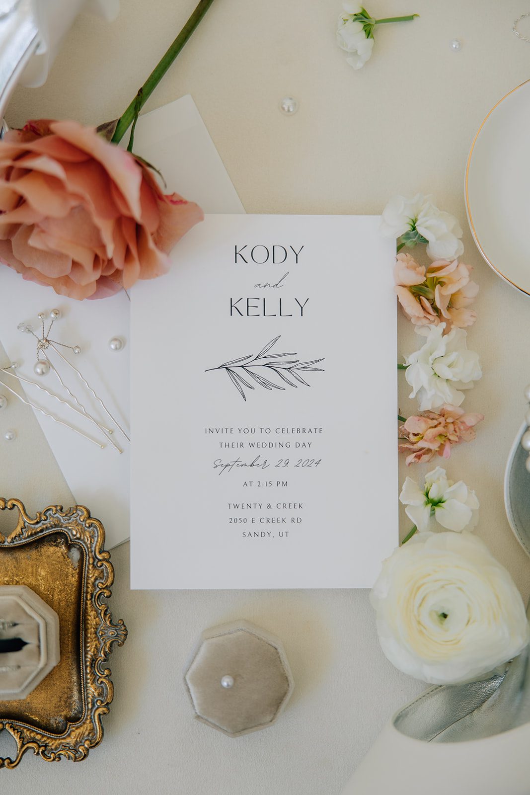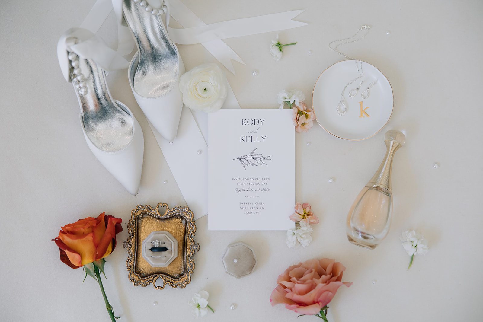 Kelly and Kody’s wedding invites, designed by Kelly herself through Postable, were displayed alongside sentimental details like their rings, perfume bottle, and keepsakes. It was a beautiful reminder of the little things that make a wedding day feel so personal and meaningful.
