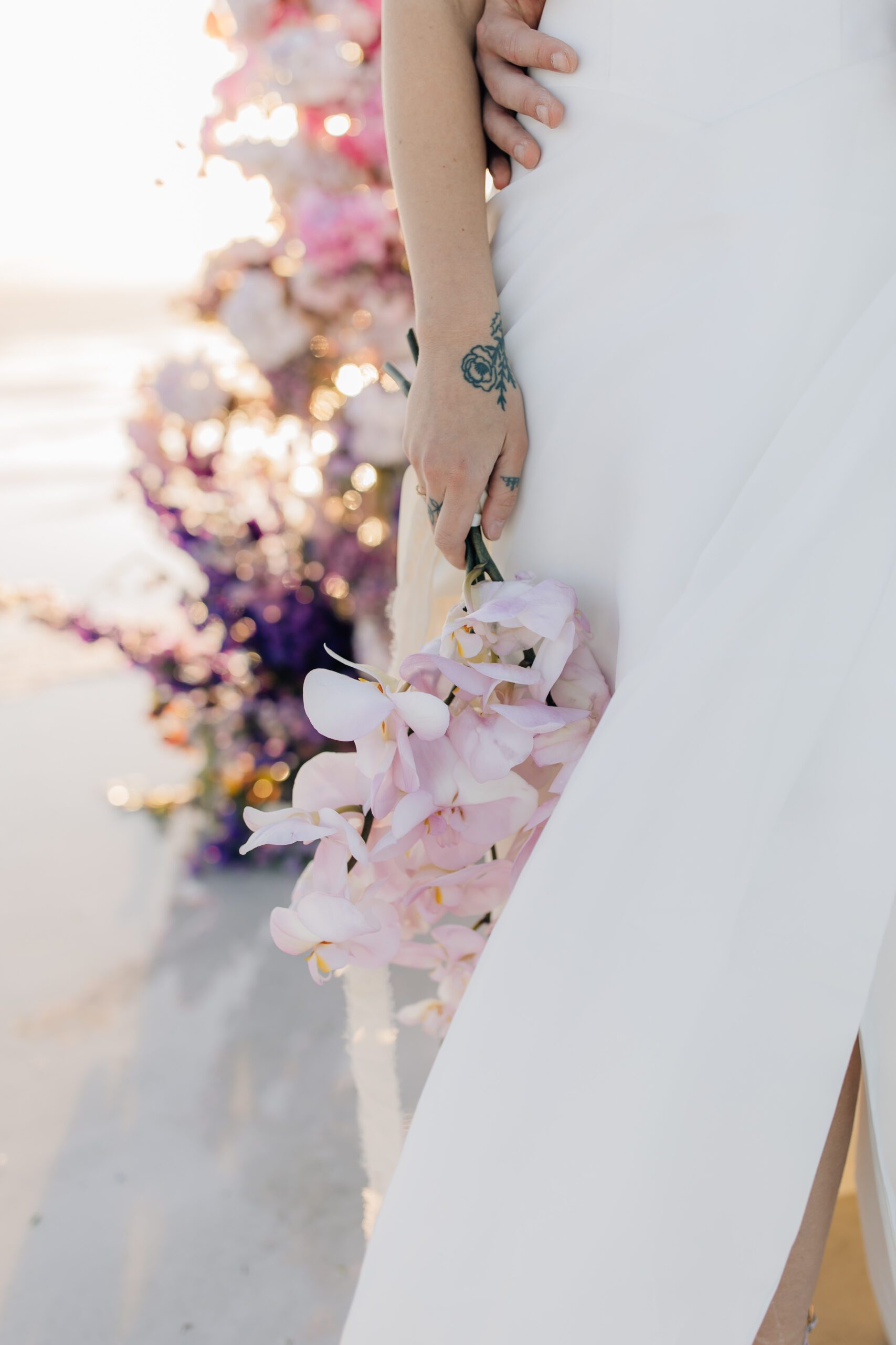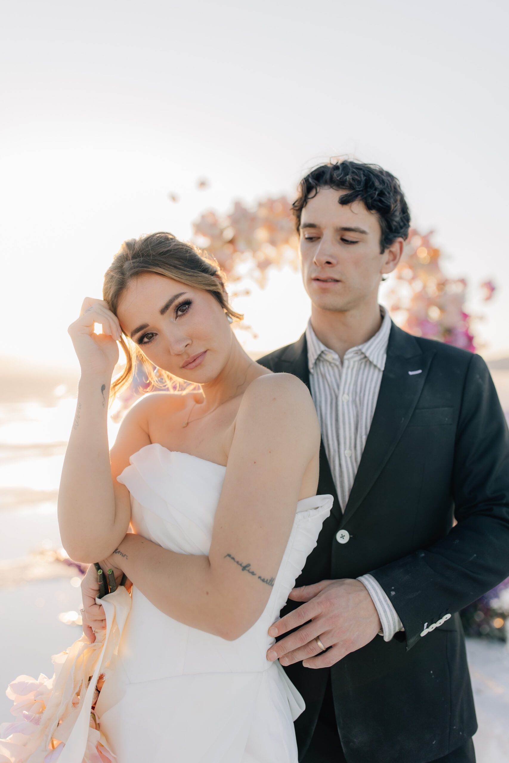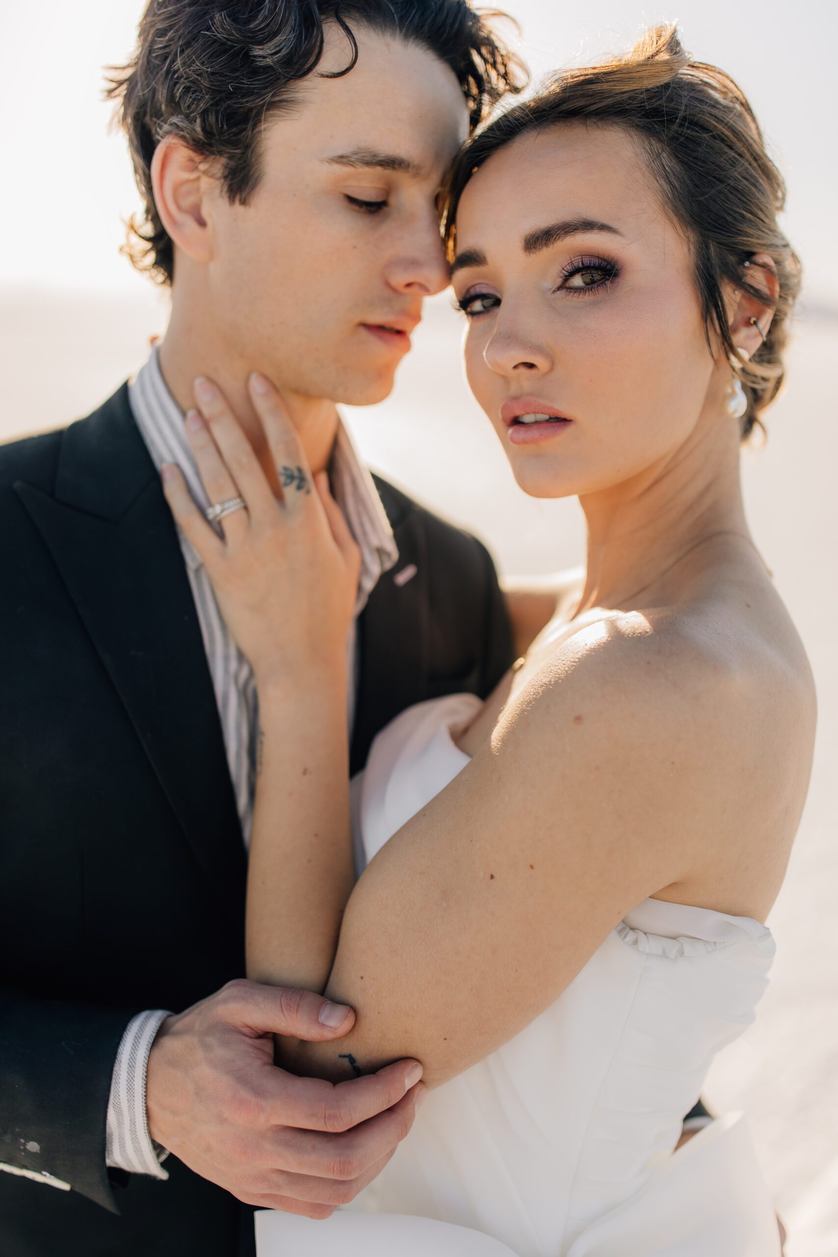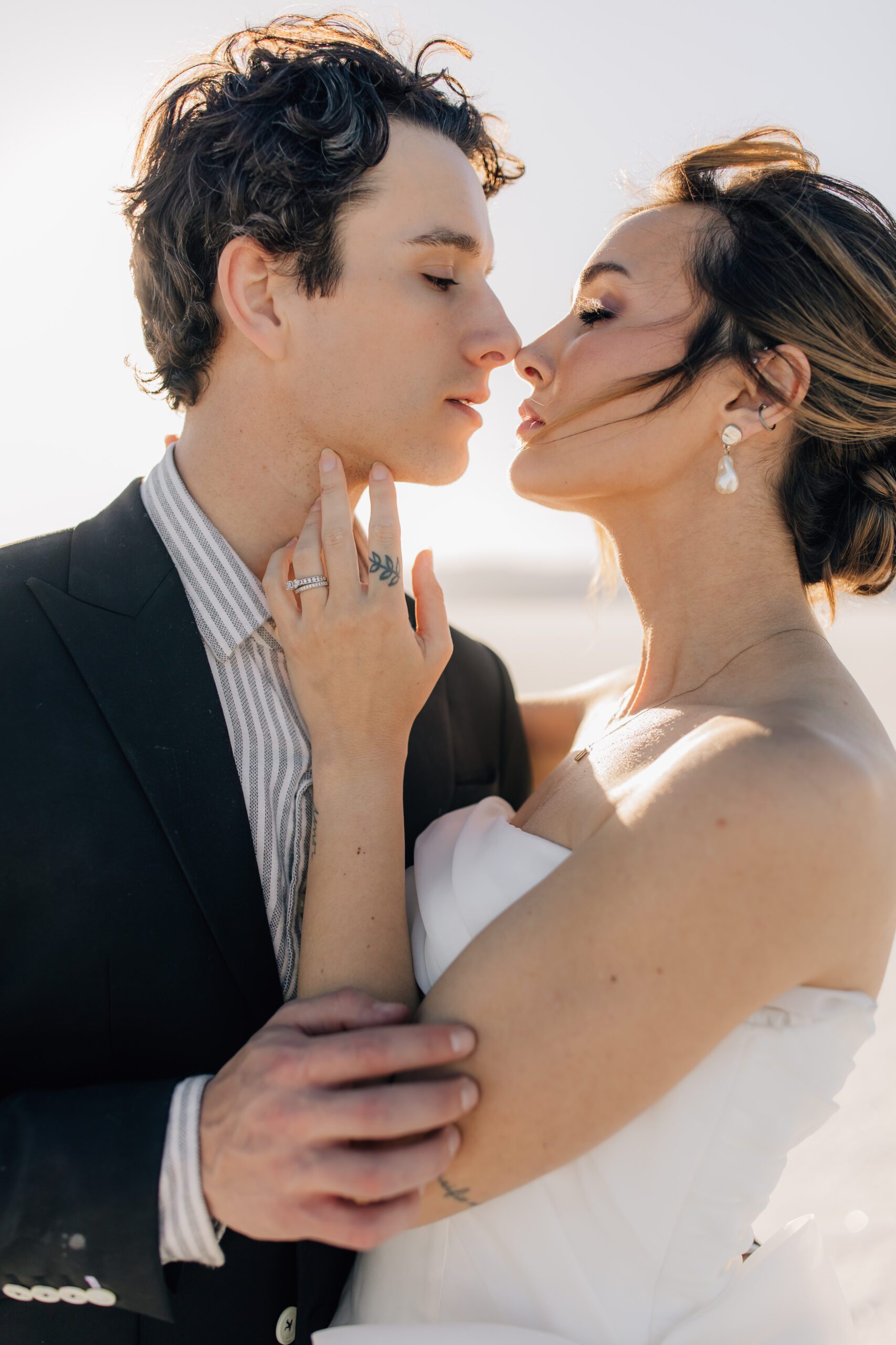 • The Wardrobe: The wedding dress from @bodabridal was all flowy and dramatic – perfect for catching the breeze and looking amazing against that mirror-like backdrop. And the suit from @suitupcustomclothing? Total class.