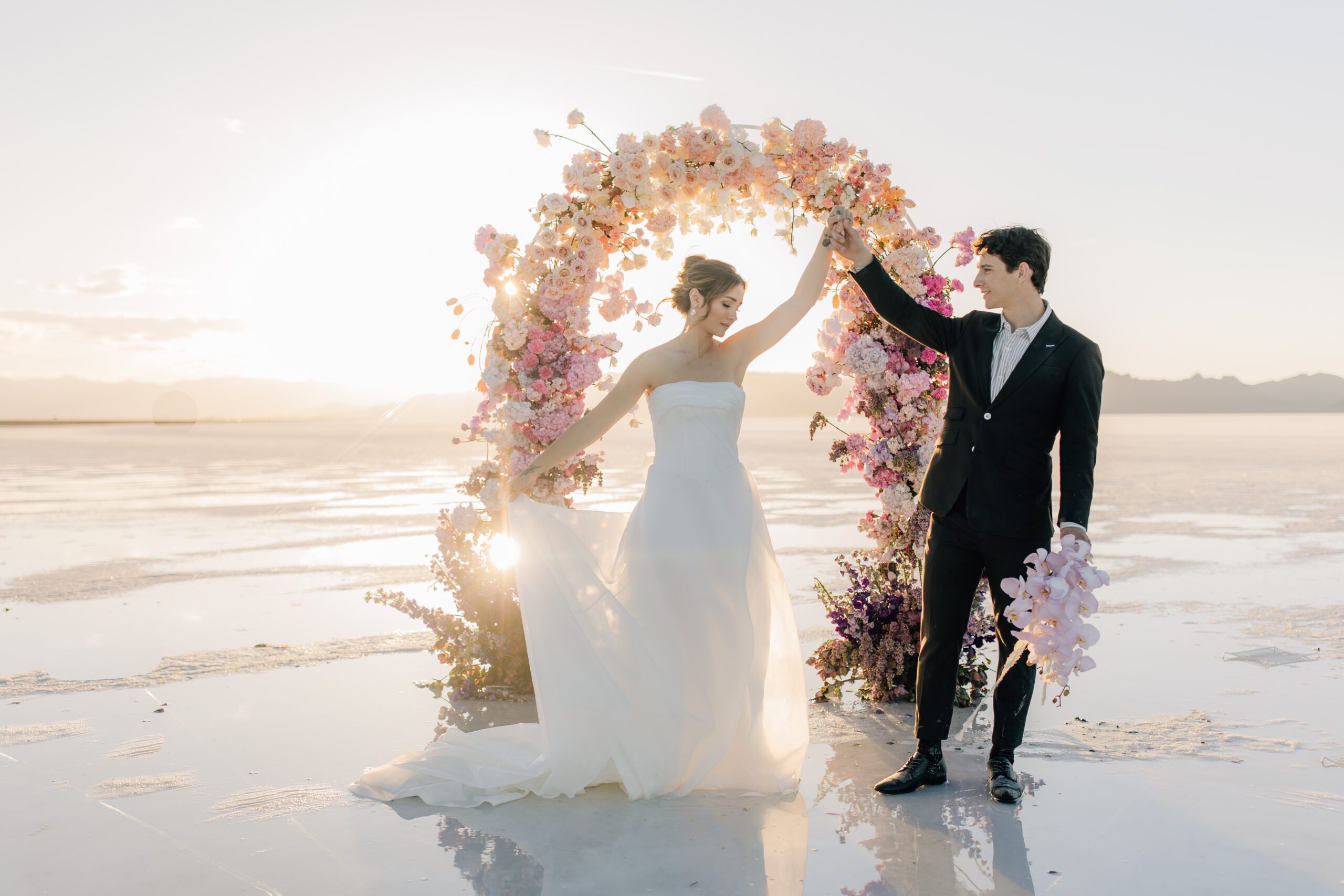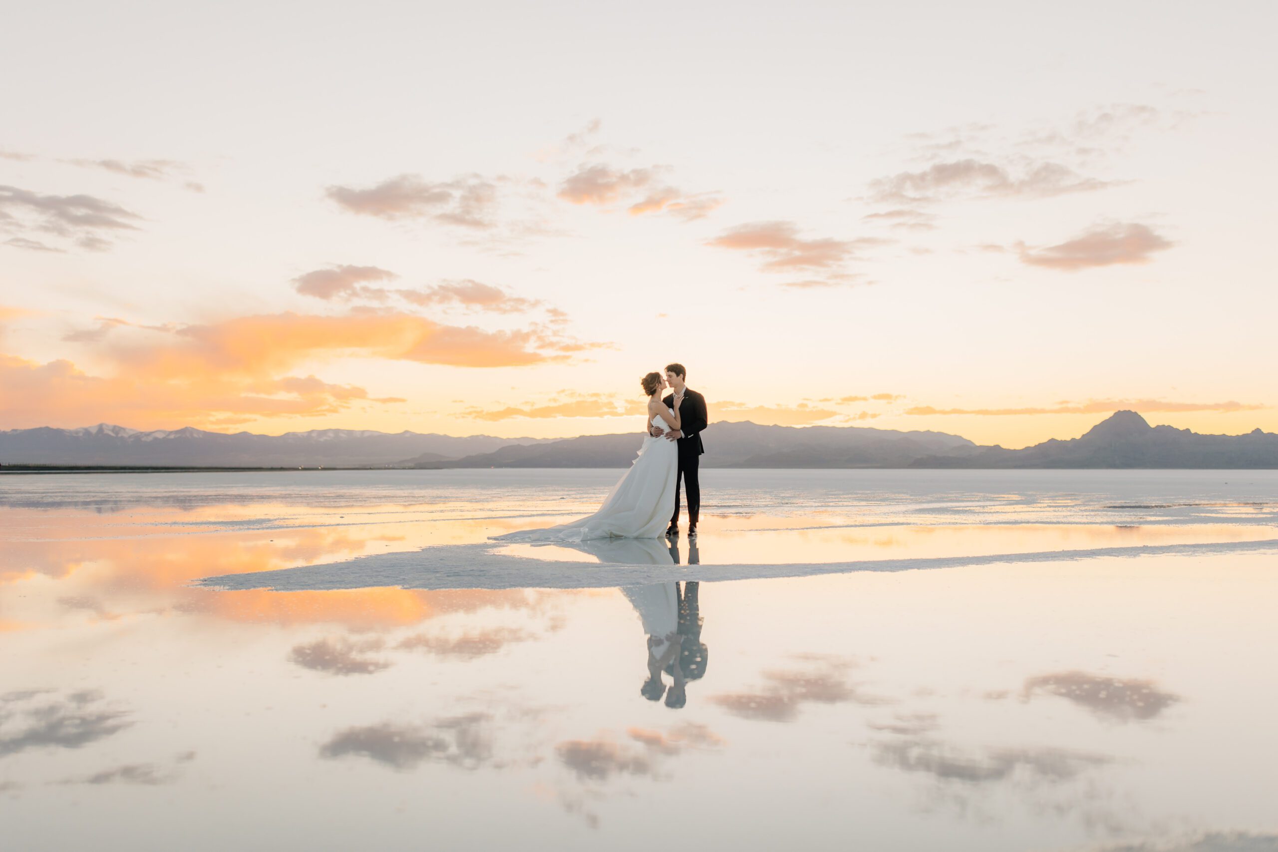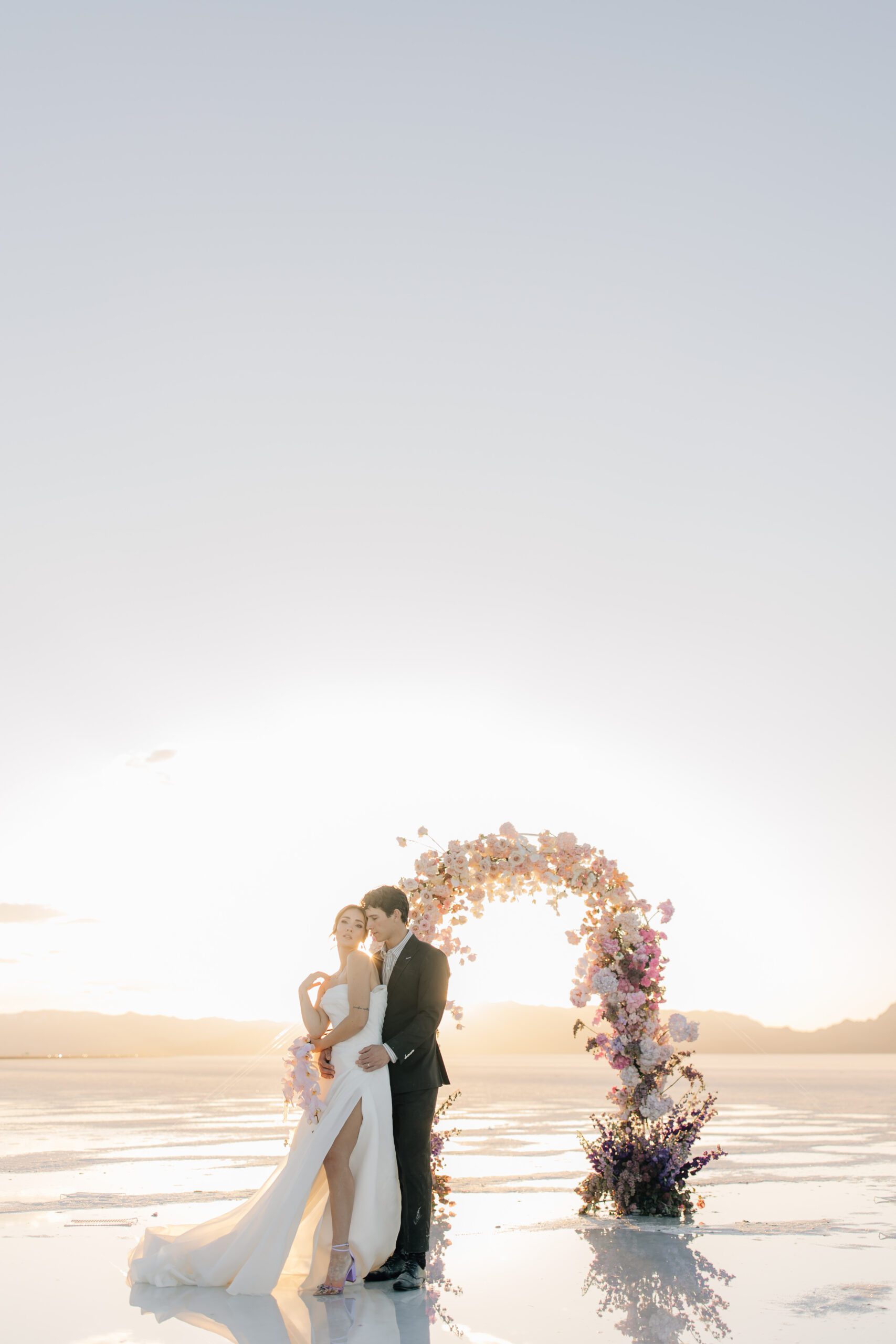 When there’s a thin layer of water covering the Salt Flats. It creates this unreal reflection effect. It’s the perfect backdrop for weddings, engagements, or just a styled shoot you want to be out-of-this-world beautiful. The natural vibe of this place is so stunning that you barely need to add anything to make it pop.