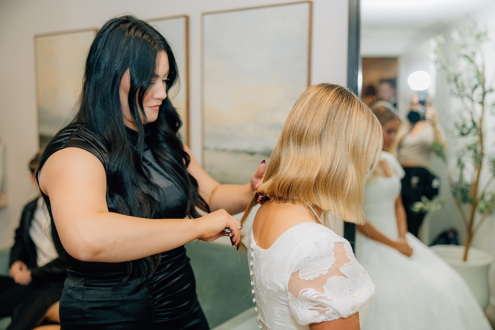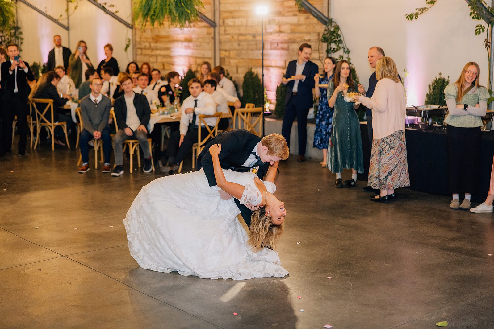 One of the most unique parts of the day? Sadie’s epic surprise for the reception. After the ceremony, she snuck away to have her hair cut into a chic, shorter style by the talented Torrie (@beautyby.torrie). When she walked into the reception with her new look, the room absolutely erupted. It was such a fun, unexpected twist that showed off her bold personality.