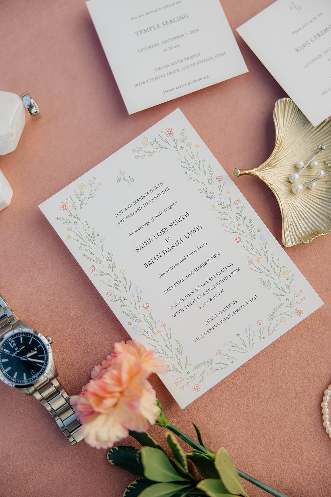 The details of this wedding were beyond beautiful. Foxglove Utah (@foxgloveutah) created floral arrangements that were works of art. The colors and textures brought such life to the venue. The invitations, designed by Hannah E. Darby (@hannahedarby), set the tone perfectly with their elegant design. Everything felt cohesive and intentional.