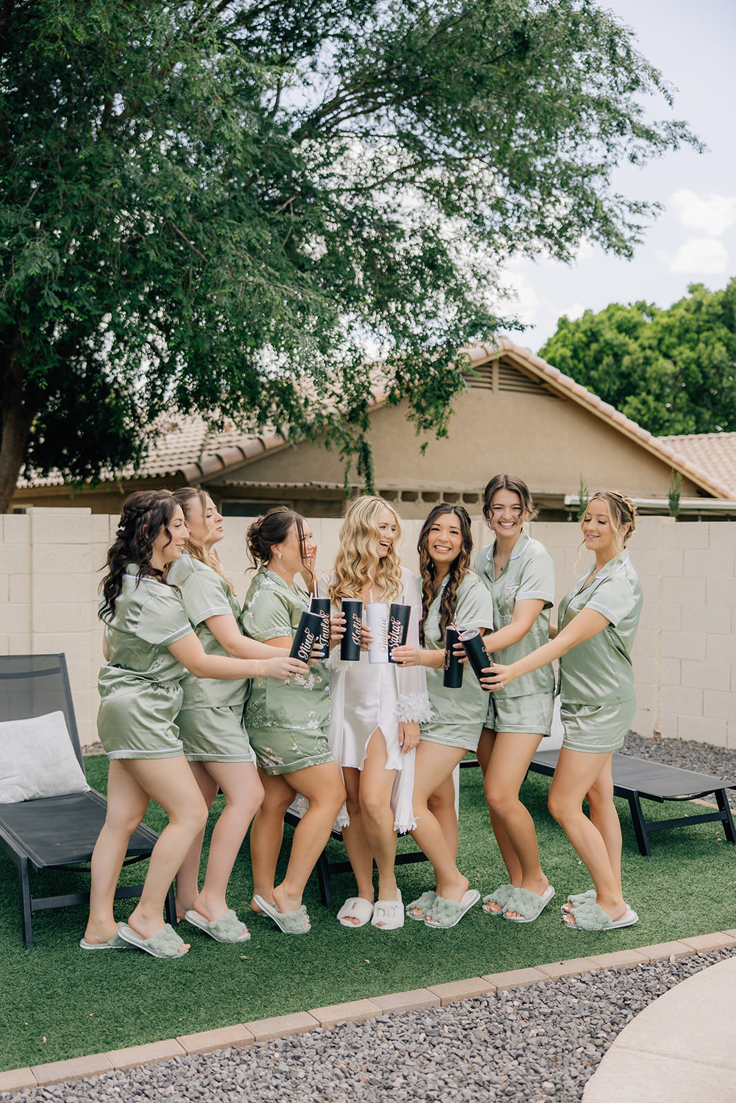 Natalie looked absolutely radiant in her gown from Mariee Bridal in Scottsdale, while Logan looked dapper in a classic tux from Men’s Wearhouse. Her hair was styled lovingly by her mom, while her bridal party’s glam was taken care of by Celene and Elle from Blissful Beauty.